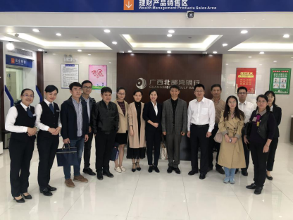 王副处长一行首先前往北部湾银行民主路支行进行参观访问,详细了解银行有关业务流程、工作方式、企业文化建设等内容。参观结束后,王副处长一行来到北部湾银行总部,与谢兆东副书记、刘攀总经理等银行领导深入探讨银行用人需求及市场就业趋势。谢副书记表示,北部湾银行将积极为我院毕业生搭建就业平台,提供海量就业岗位,选拔优秀人才进入北部湾银行工作。王利军副处长感谢北部湾银行对公司就业工作的大力支持, 他表示下一步将积极配合银行有关部门,达成长期的就业合作协议,举办大型线下宣讲会,鼓励我校毕业生积极求职应聘。