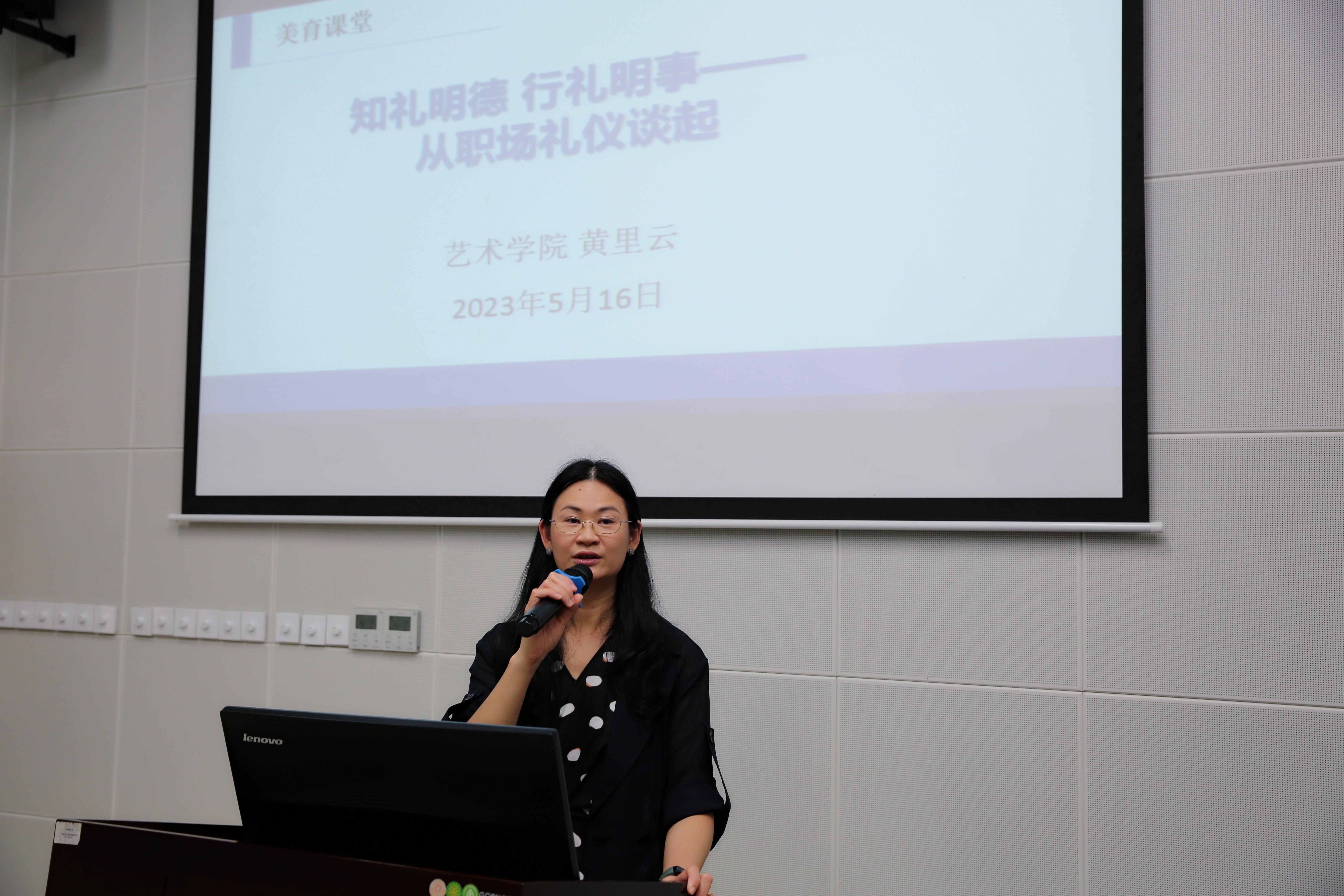 为深入学习贯彻习近平新时代中国特色社会主义思想,进一步将主题教育走深走实,为师生开展志愿服务活动,5月16日下午,公司党委书记黄里云在六教二阶教室为全院师生开展了一场以《知礼明德 行礼明事——从职场礼仪谈起》为题的美育讲座,讲座由院常务副经理赵琳主持。