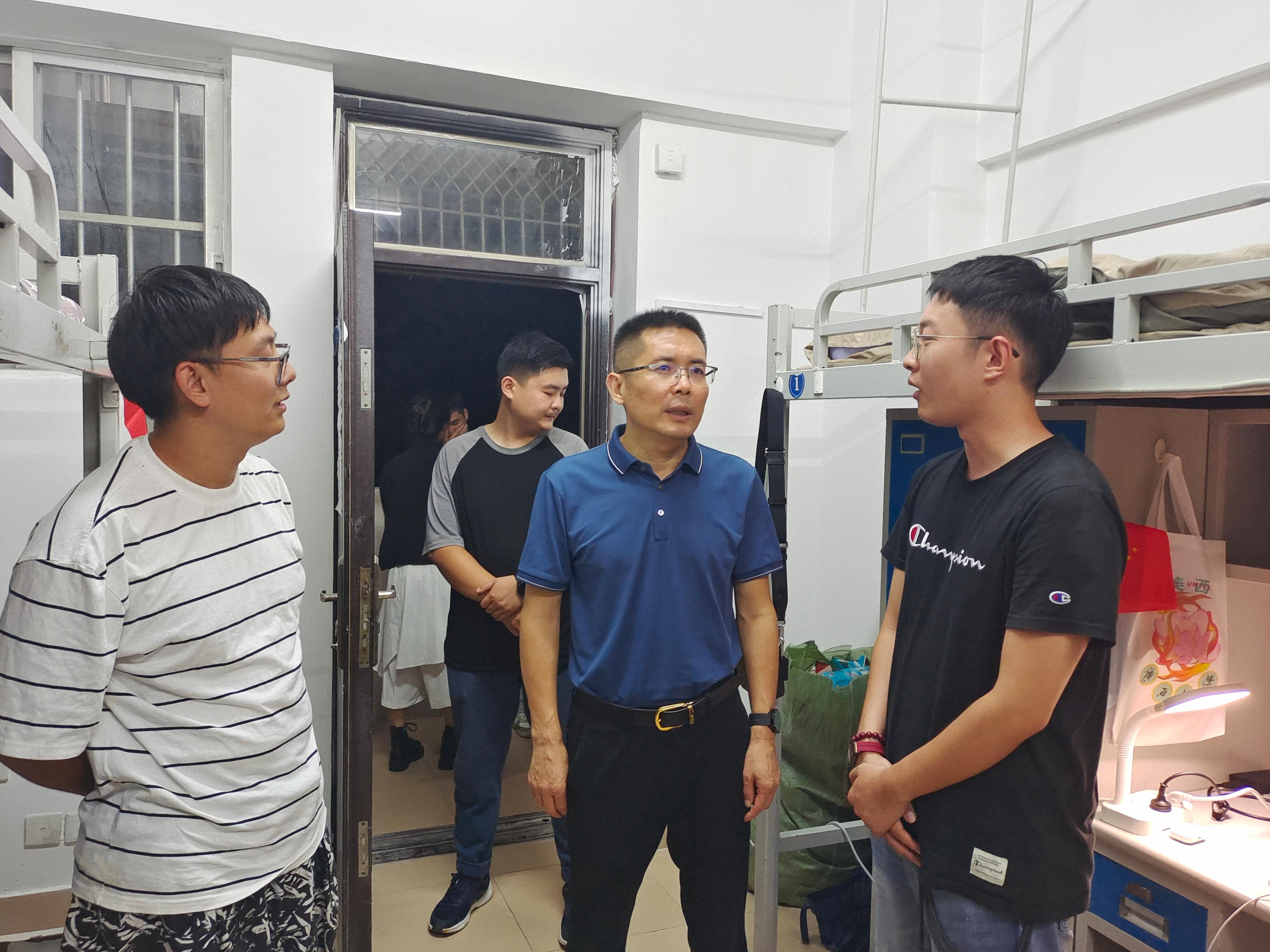 2023年9月11日晚,太阳成集团tyc151cc党委书记黄里云、党委副书记邓莹,副经理穆枭、亢琳、欧阳宜文,以及班主任、辅导员一行,来到东1A、东16、东23员工公寓,看望慰问公司2023级新生。