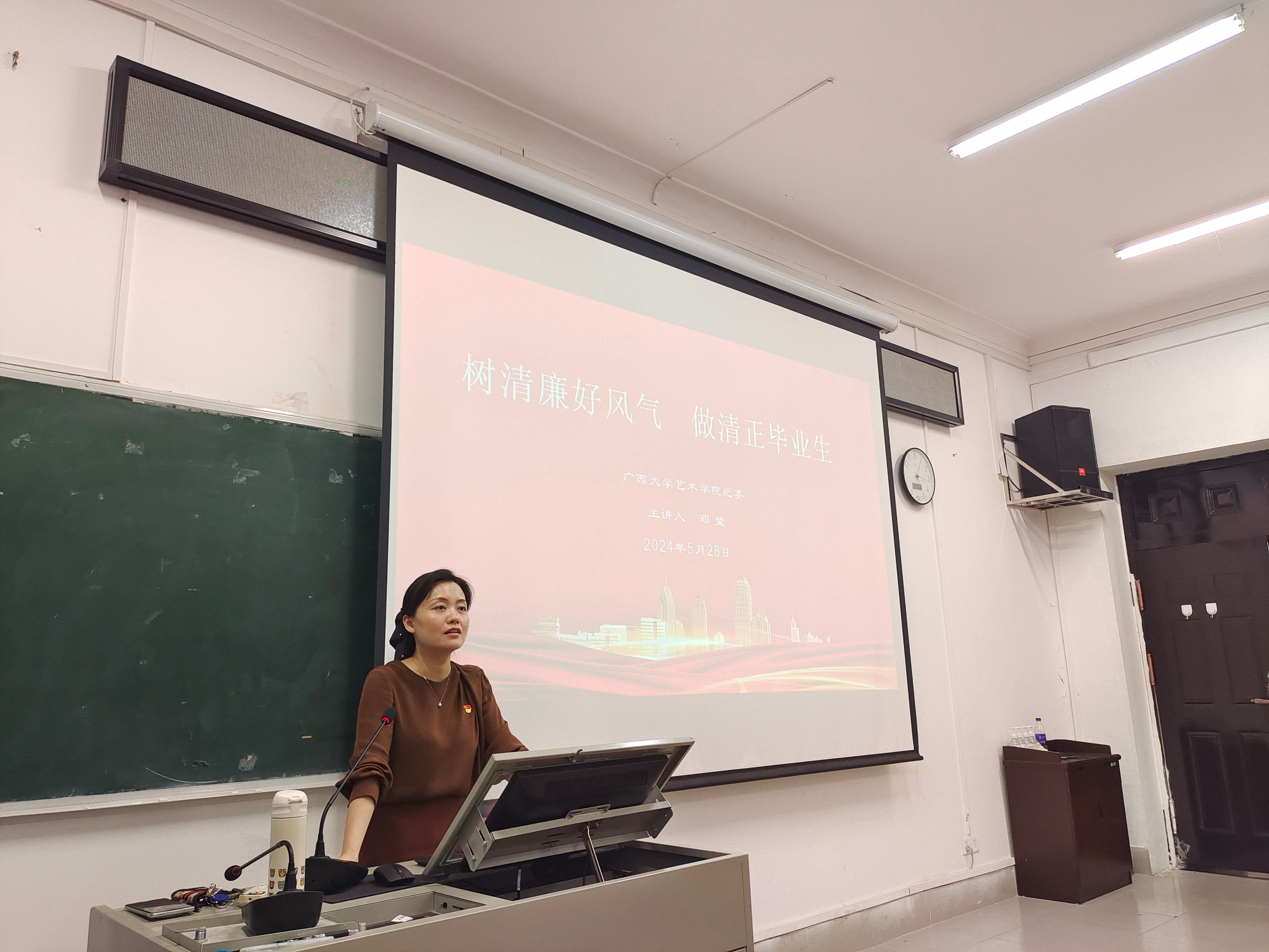 本次党课的主题为“树清廉好风气,做清正毕业生”,邓莹副书记从大学毕业生开展廉洁教育的必要性、始终保持“赶考”的清醒和对“围猎”的警觉、年轻干部违法违纪案例警示三个方面,结合对《中国共产党纪律处分条例》内容的学习,为毕业生党员上了一堂发人深省、内涵丰富的廉政党课。她勉励大家要牢固树立不负人民的家国情怀,将个人理想融入国家发展、民族大义中,要坚定理想信念,牢记初心使命,把遵规守纪铭记在心,构筑牢固的反腐倡廉思想和道德防线,以青春之我、奋斗之我,奋力书写为中国式现代化挺膺担当的青春篇章。