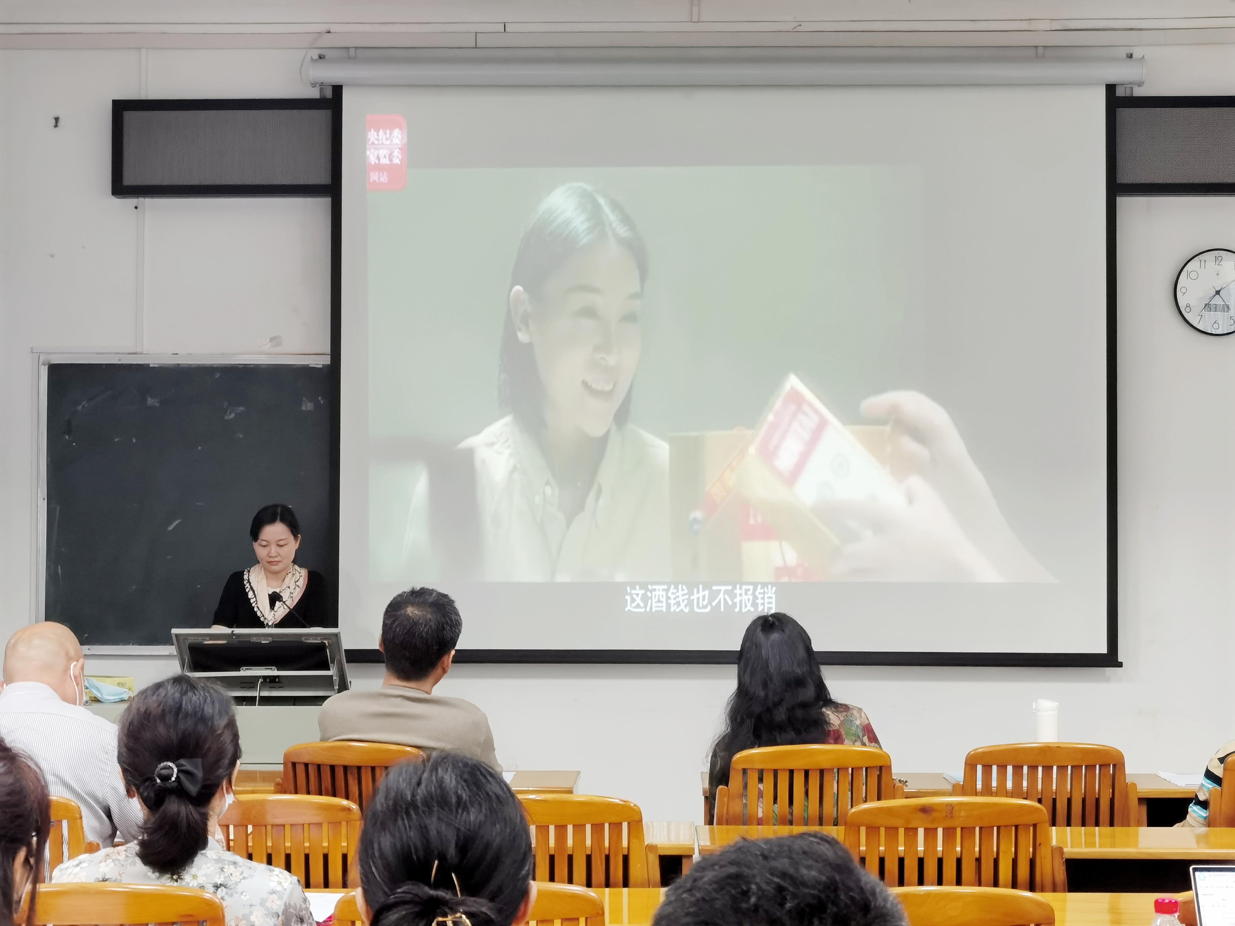 邓莹首先带领大家学习《太阳成集团tyc151cc推进“清廉西大”建设方案》,她从“清廉西大”建设背景、指导思想和主要目标、主要任务和措施、建设任务分解、“清廉学院”建设五个方面进行解读,按照建设方案要求布置相关工作任务。她强调要全面领会“清廉西大”精神内涵,做到树高线、守底线,提高政治站位,增强廉洁自律意识,为学院营造风清气正的政治生态和育人环境做出自己的贡献。随后现场还播放廉政警示教育片,教育片选取部分高校领导干部和教师违法违纪的典型案例,用“以案明纪”的方式,通过展示其在权力和金钱的诱惑下违反中央八项规定、违规套取科研经费、利用职权进行违法犯罪活动的全过程,警示全体教职工要务必注意规范自身行为,树立廉洁意识,时刻警钟长鸣,严守纪律规矩。